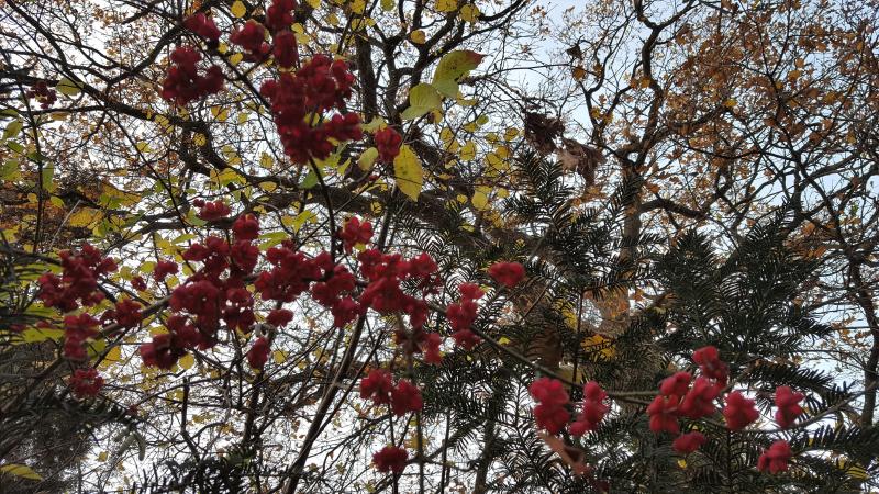 Ein Bild von vorgestern, auch mit ganz viel Struktur, aber ohne rauen Reif -- Pastorenmuetzen, Eibe, verschiedene andere wuchsfreudige