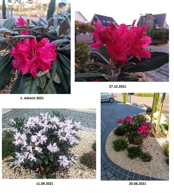 Hallo zusammen, ich habe meinen Garten in den letzten 3 Jahren angelegt wo auch ~40 Rhododendron verpflanzt wurden. Sind jetzt noch nicht im hohem alter aber blühen tun sie ja schon. Ich fange mal mit meinen beiden Herbstblühern Septermbercharme und Weinlese an. Septembercharme hat zu einem 3/4 im letzten September geblüht. Die Weinlese von Mitte August bis Weihnachten. Bei der Weinlese ist nur eine Knospe nicht aufgegangen die sich jetzt im Mai noch öffnet.