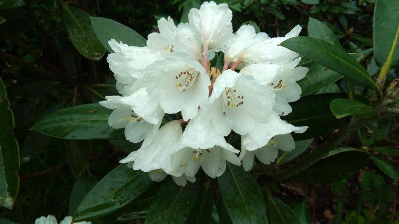 Trotz extremer Trockenheit seit ca. 10 Wochen haben wir eine schöne Rhodo-Blüte, die aber nur von kurzer Dauer sein wird... ???