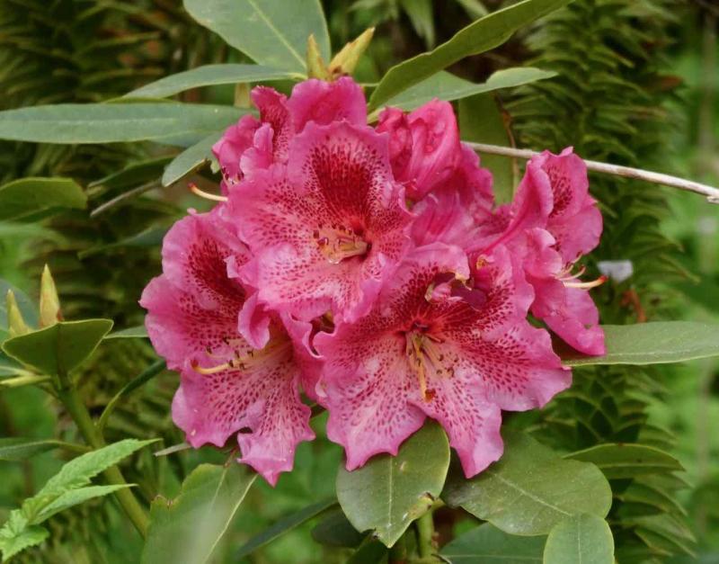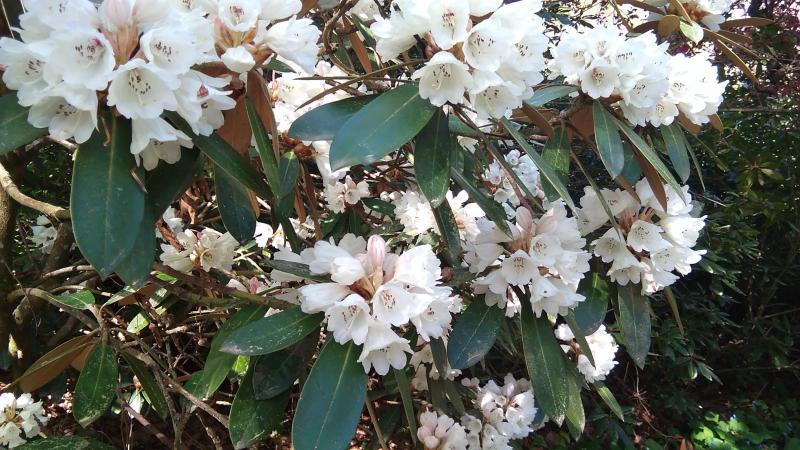 Sehr gesunder Rhodo's aus Samen vor dreißig Jahren gezogen. Noch nie Probleme mit den Knospen, keine Pilzerkrankungen, sehr sattes grünes festes Laub, braunes Indumentum. Leider weiß ich nicht mehr den Namen.