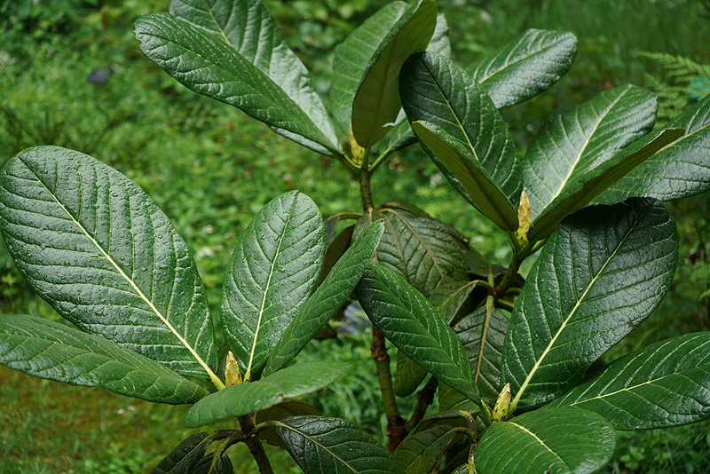 Zwischendurch mal große Blätter, R. sinogrande präsentiert sich schön vital nach dem Regen, man freut sich schon auf den neuen Austrieb...