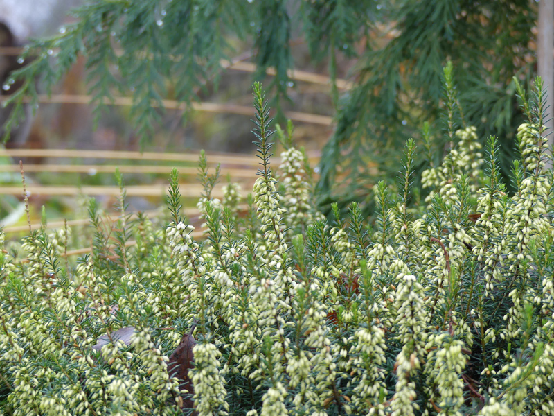 Hier ist es dieser Tage eher nur grau. Da muss die Heide für einen weißen Garten herhalten. ;) Sie bemüht sich jedenfalls.