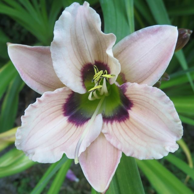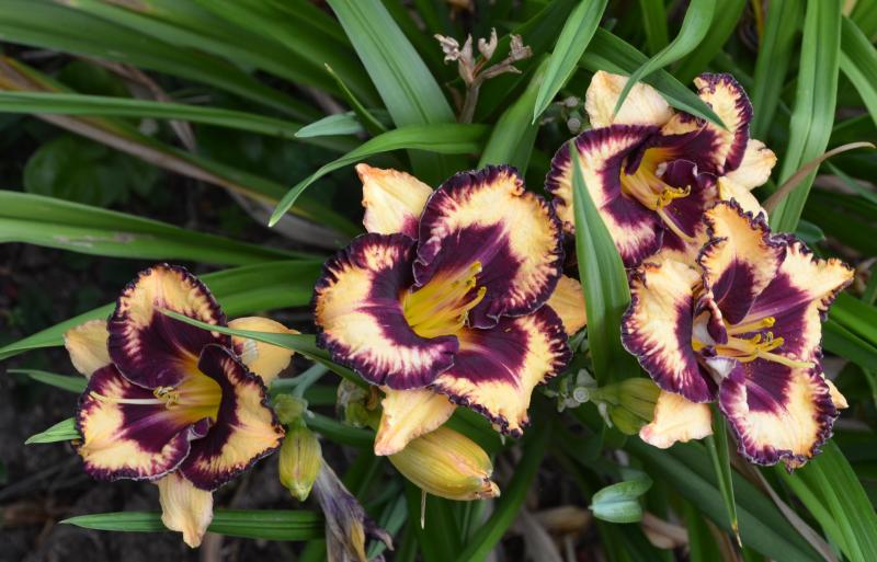 Julianna Lynn ist im spätenFrühjahr aus dem Zweitgarten mit gutem Boden in meinen Garten umgezogen und steht noch im (eingesenkten) Topf. Von daher hatte ich eigentlich keine großartige Blütenerwartung.Ein schon älterer Smlg von mir aus Julie Newmar X Moonlit Masquerade, der besser öffnet als MM und nicht so zickig wie JM ist. Arbeitsname 'Julie's Masquerade'