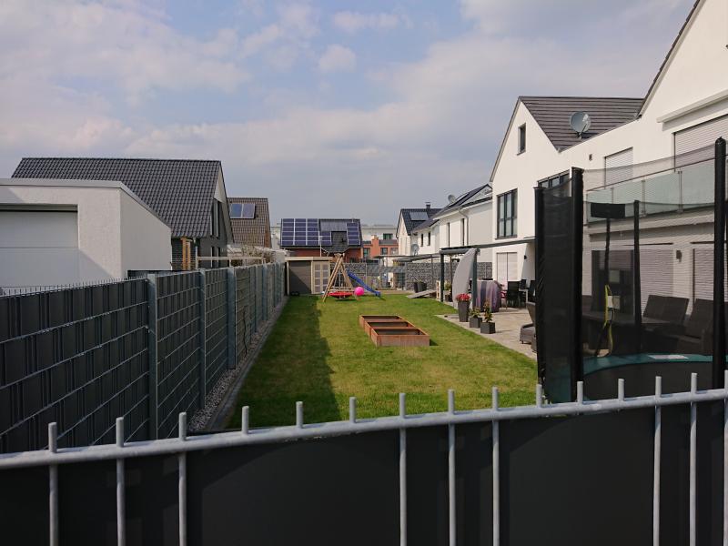 Mir tun aber vor allem die Kinder im Knasthof leid, da kann auch Gemüseknast nicht mehr helfen. Vor allem nutzt der "tolle" Sichtschutz ja überhaupt nichts, wenn der Nachbar vom Balkon oder den bodentiefen Fenstern im OG in den Knastgarten guckt. Da müssen also auch noch Kirschlorbeer-Hochstämme hin...