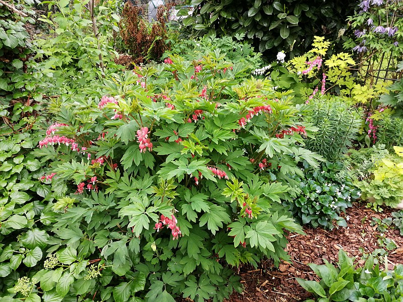 Dahinter sieht man noch Dicentra spectabilis 'Alba' und 'Gold Heart'.