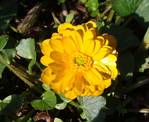 Die ganze Sortenvielfalt soll übrigens von Ficaria calthifolia stammen, der östlichen, mehr auf trockenwarmen Standorten wachsenden Art. Sie bildet keine Stengelbulbillen, vermehrt sich aber im Gegensatz zur verbreiteten, sterilen Ficaria verna subsp. bulbilifera über Samen.