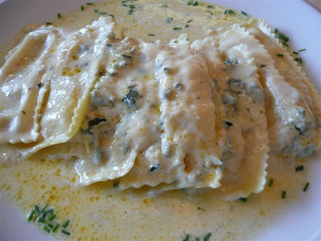 ... danach Wildkräuter-Ravioli an Gorgonzola-Sauce