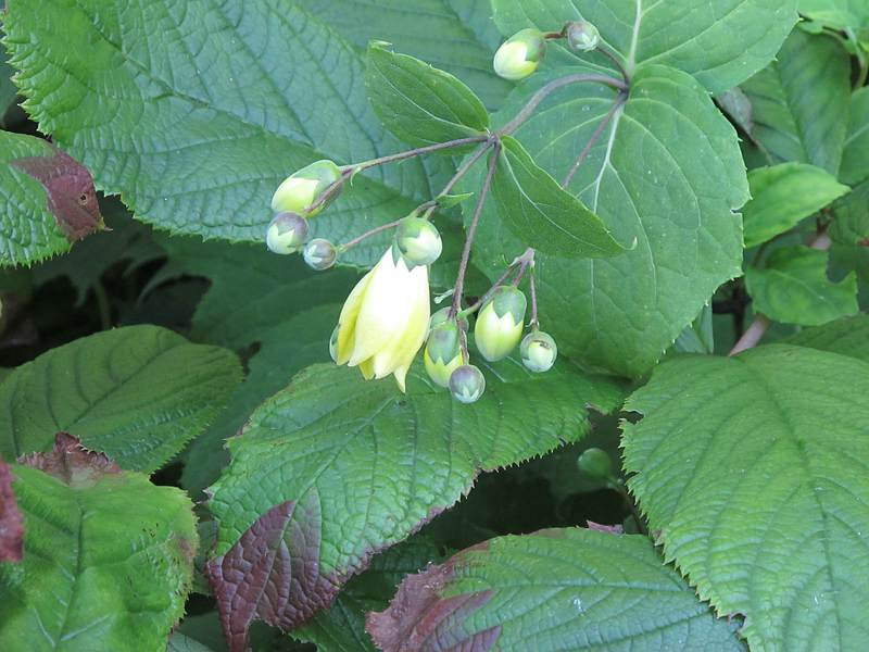 Im Vorgarten steht eine prächtige Kirengeshoma palmata, die sich moderat aussät.