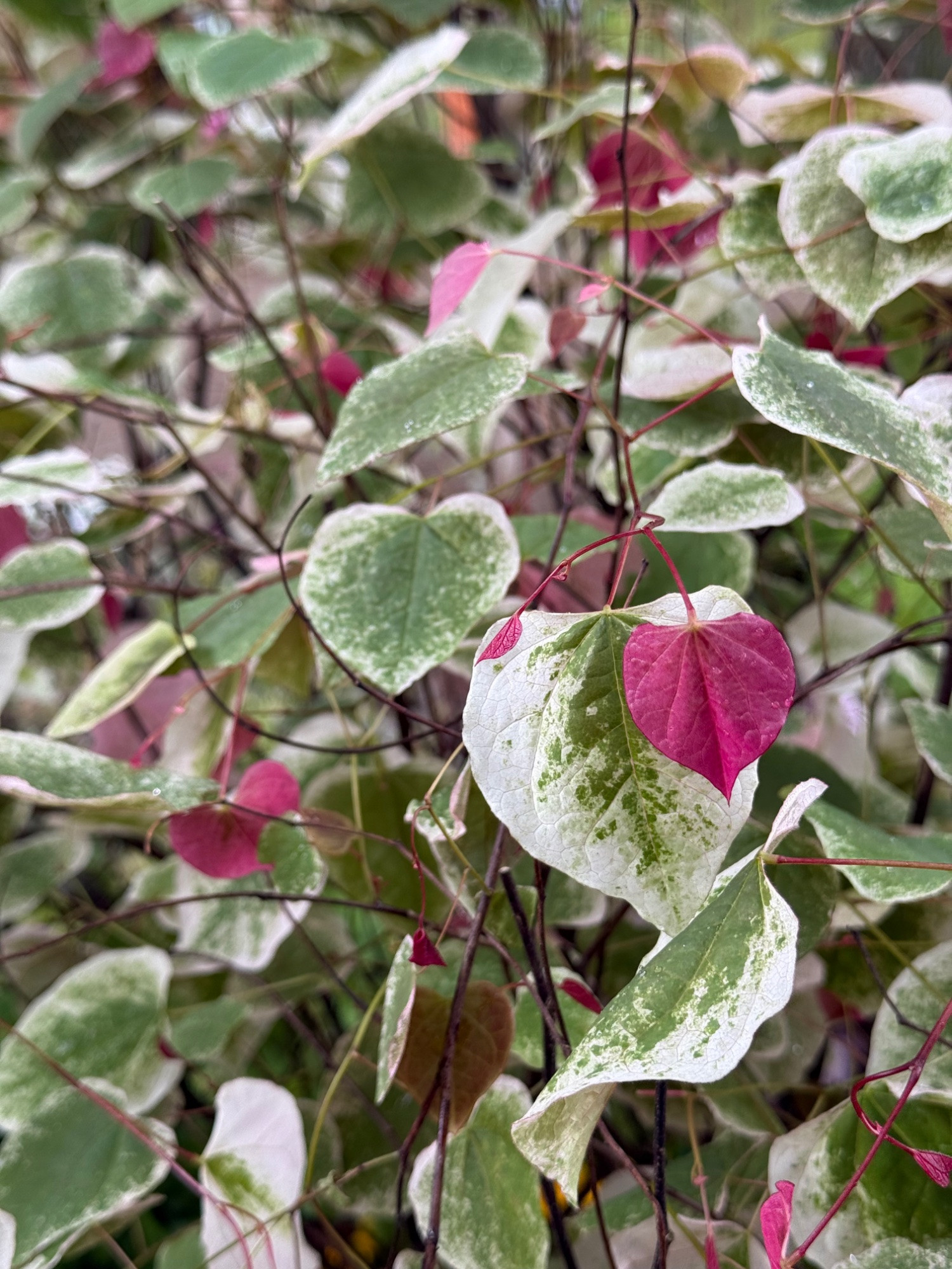 Cercis "Sweet Caroline" nicht ganz so dynamisch wie Eternal Flame, aber sicherlich etwas für Fans von Panaschierung und die neuen Blätter sehen schön rot aus ist also auch nicht ganz so statisch wie andere panschierten Sorten: