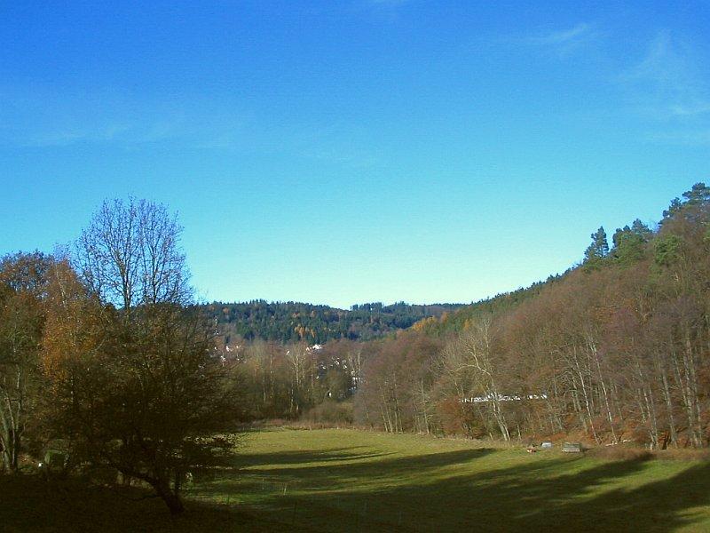 Auch wir haben schon wieder einen klaren, wolkenlosen Himmel, heute bei 3°C. Der November schickt sich an, bei uns einer der sonnigsten Monate des Jahres zu werden .Gestern Nachmittag ist es allerdings zugezogen, und am Abend heulte ein ziemlicher Sturm ums Haus. Dabei blieb es aber trocken. Die eichenbestandenen Hänge ringsum präsentieren sich jetzt in ihrem Winter(nicht-)Kleid.