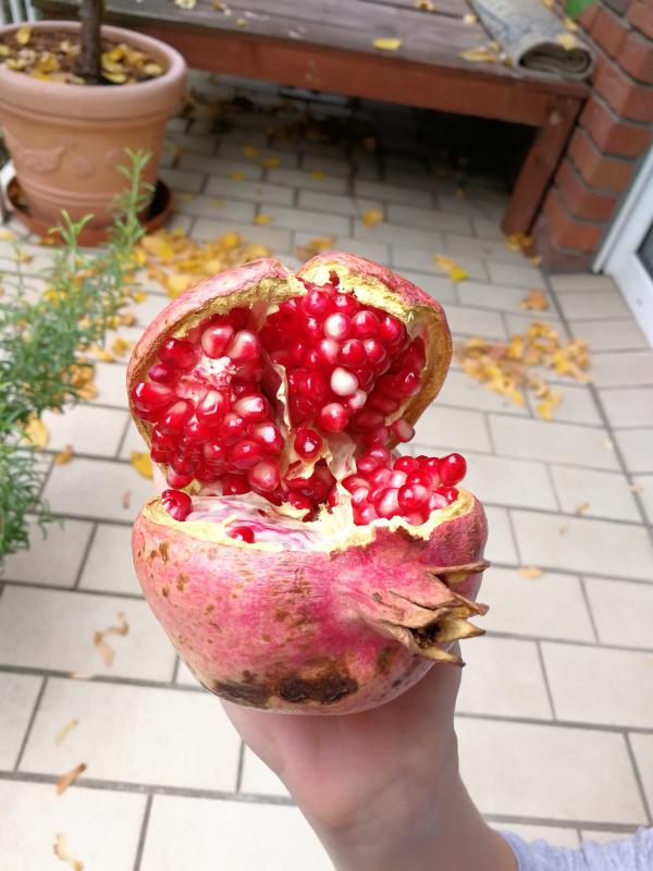 Heute einen schon aufgeknackten Granatapfel gepflückt.