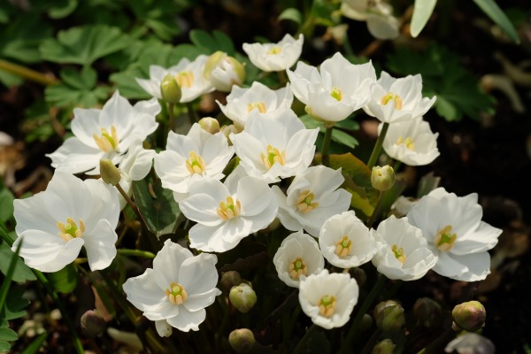 eine varietät der Jeffersonia dubia gibt es, die nach meinen recherchen offenbar nur in südkorea vorkommt...dort zeigt J. dubia purpurfarbene pollensäcke + fruchtknoten, was einen tollen kontrast zur malvenfarbenen blütenschale ergibt. leider bin ich immer noch nicht fündig geworden.