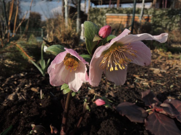 Pink Ice blüht hier später als meine niger, also so in etwa jetzt (März). Schnee sollte kein Problem sein, eher gut !! Hier steht sie eher schattig und wächst langsam, aber sie wächst ;)