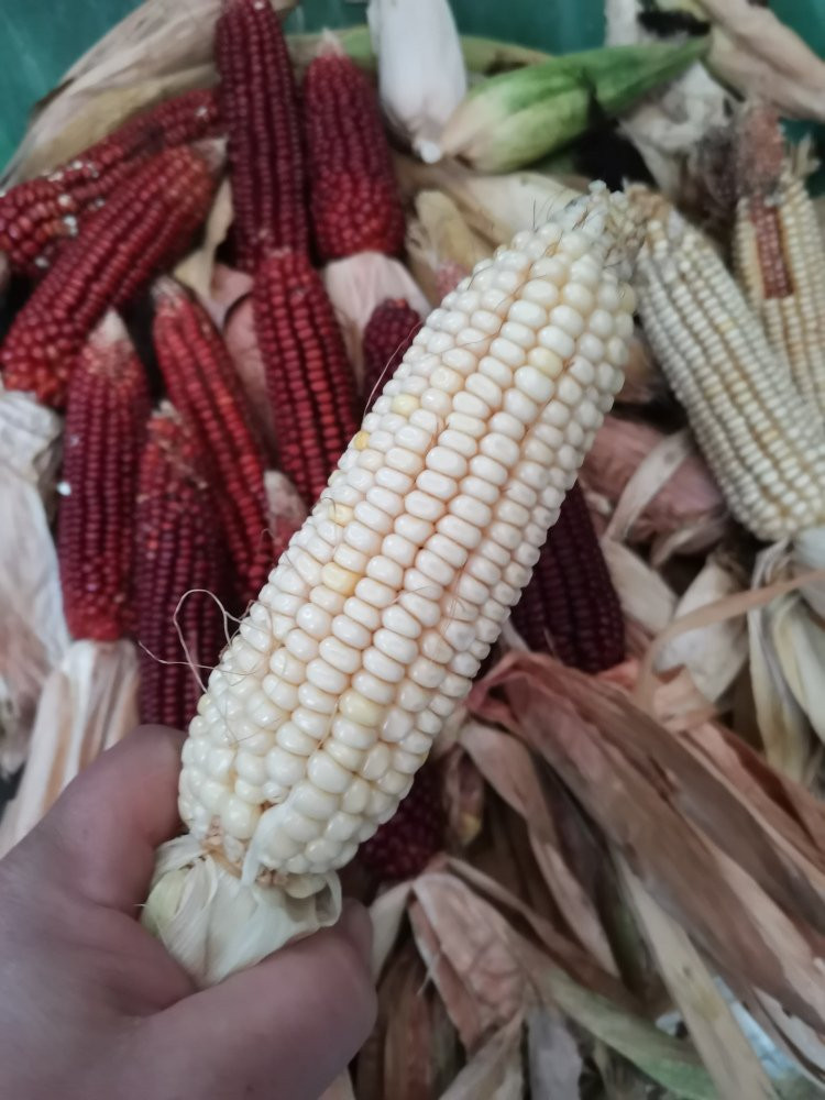 Hier haben die Vögel, also Tauben und Papageien, mittlerweile so viel Spaß an den Kolben gefunden, das eine Abdeckung zum sichern der Ernte notwendig wurde.