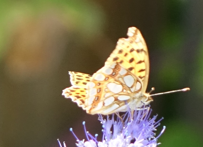 Den habe ich heute zum ersten Mal bei mir im Garten gesehen, den kleinen Perlmuttfalter