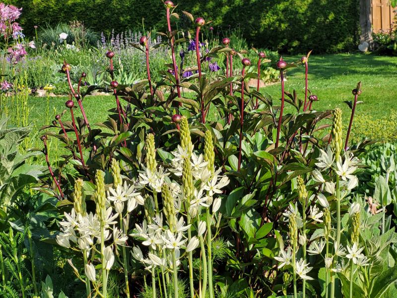 Zu Pfingsten blühen jetzt erst die weißen Camassien. Diesmal sehr viel später als die blauen, dafür aber bei besonders schönen Wetter.