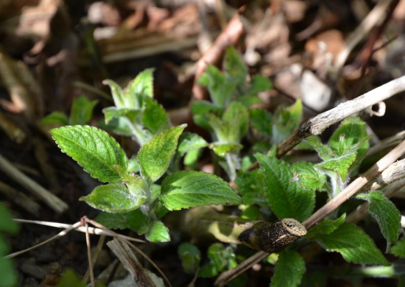 Dann sollte es danach riechen. Calamintha ebenfalls. (Die hat später "glatt" wirkende Blätter, ist aber im Austrieb recht haarig. Ich bin mir aber unsicher, ob sie nicht kompakter austreibt.)