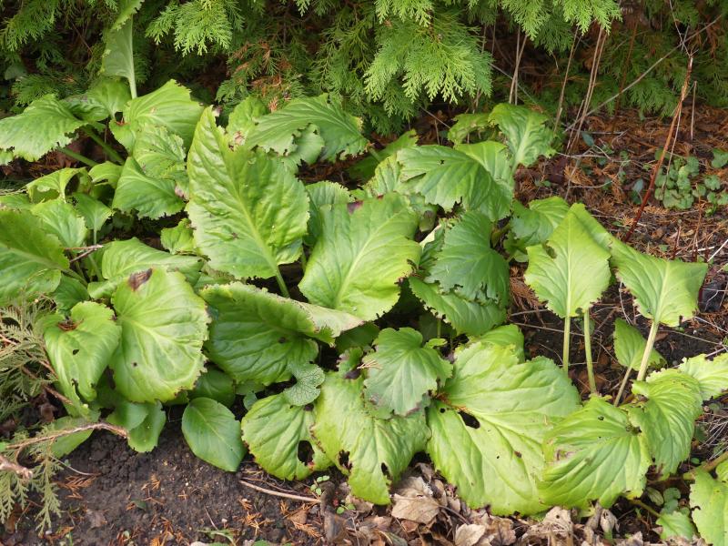 Die Bergenienblätter sind bei den Schnecken beliebt.