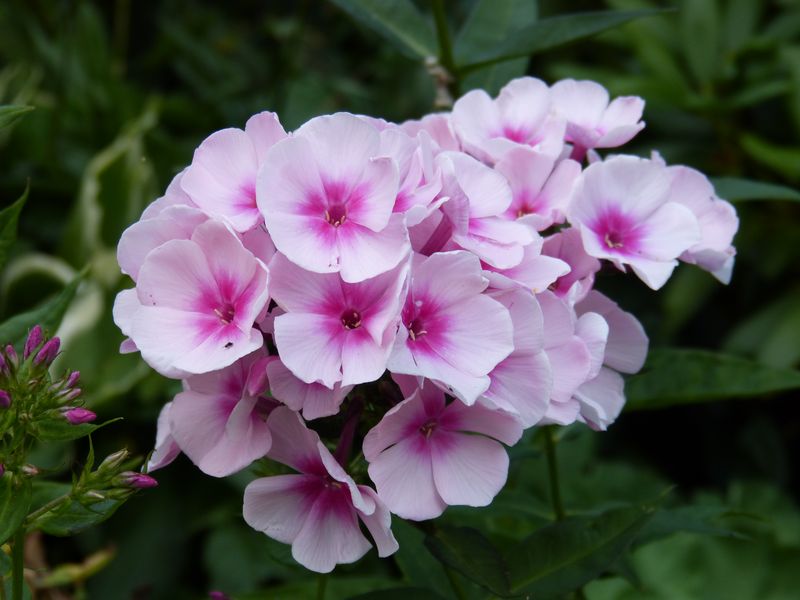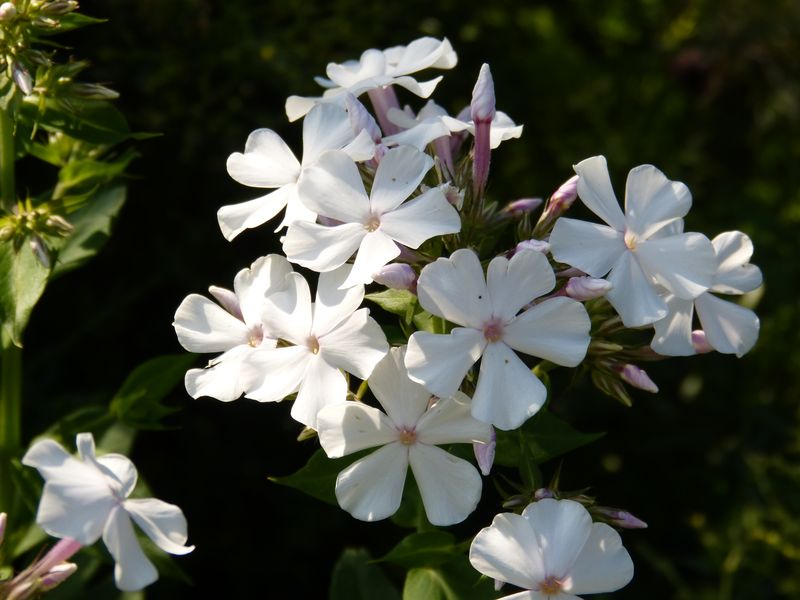 In meinem Garten kommen die Phloxe dieses Jahr sehr spät in die Gänge, aber langsam laufen sie zur Hochblüte auf.Rechts ´Roselin´, der weiße Phlox heißt ´Fujiyama´, links ein Sämling.