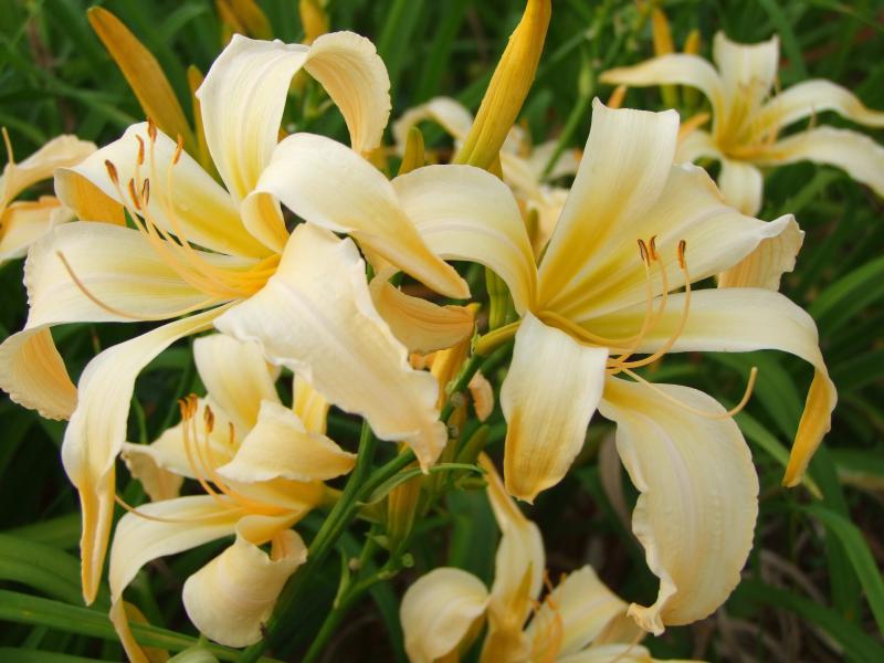 'Suzy Creme Cheese' in Hochform.Sieht ein wenig verloren aus im abgeblühten Hemsbeet.Ich sollte sie mal umpflanzen,aber ich trau mich nicht.Sie ist nach jeder Störung erstmal ein Jahr beleidigt. ::)