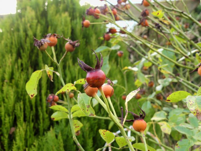 Hagebutten werden ewig verschmäht.Erst wenns sonst nix im garten zu beißen gibt ,wecken sie das Interesse der Vögel.