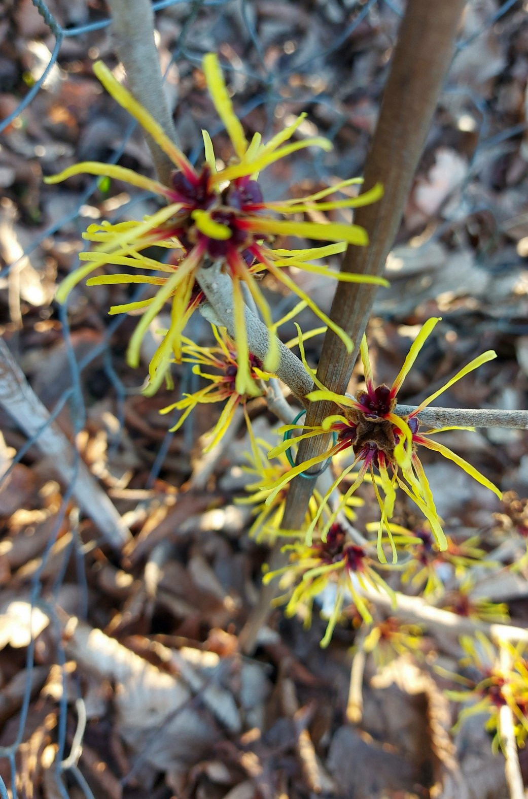Hier sind die meisten Hamamelis nach vielen Wochen, dabei unbeeindruckt von bis zu -11°C, so langsam am verblühen