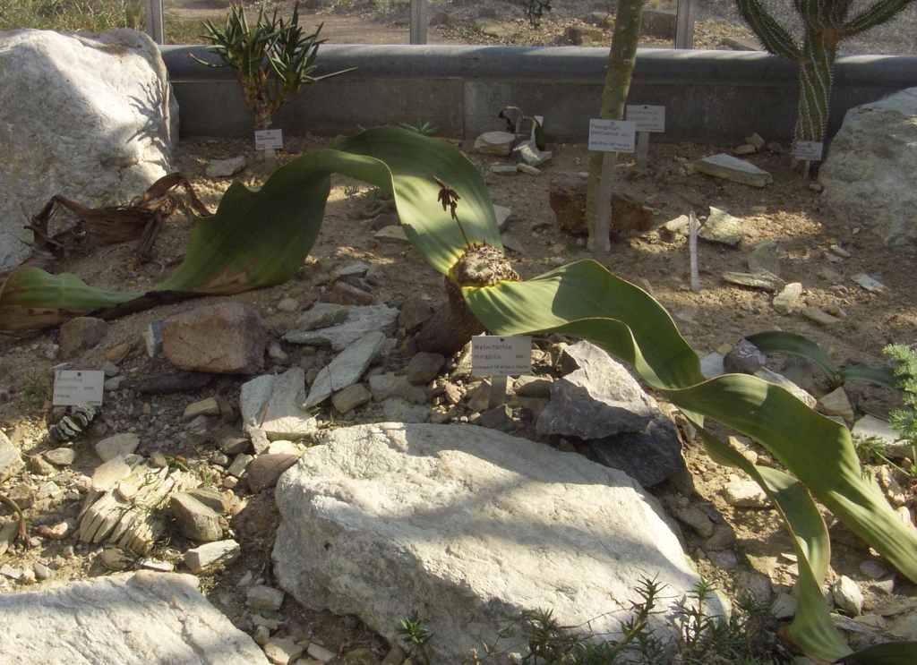 Einen Schönheitspreis wird diese Pflanze nie gewinnen, aber dafür gehört sie zu den interessantesten und absonderlichsten überhaupt: Welwitschia mirabilis, die Pflanze, die ihr Jahrhunderte währendes Leben lang nur 2 Blätter hat, die ständig von der Basis her nachwachsen (siehe auch hier)! ;)