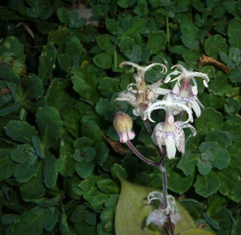 Ich bin gestern über diese Tricyrtis gestolpert. Zwar keine spektakuläre Blüte, milchiges Weiss mit kleinen Punkten, aber sehr ebenmässige Blätter und gedrungener kleiner Wuchs.