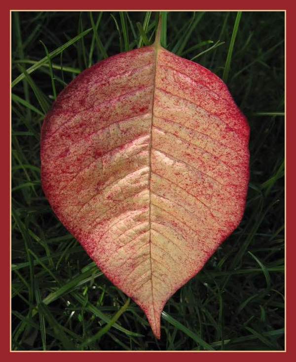 Artemisia, das glaub ich dich gerne. Es ist das Blatt einer Euphorbia pulcherrima von Weihnachten 2005.Im Moment habe ich gar keine Ahnung, von welcher Pflanze es stammt ...