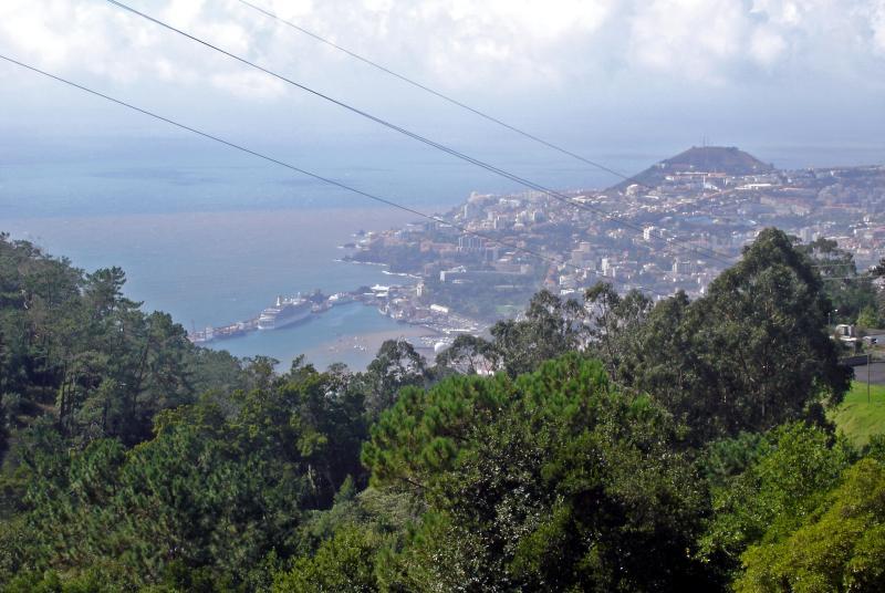 ;)Blick von Blandys Garten, unten das Meer und Funchal.Die Braunfärbung ist keine Umweltverschmutzung, sondern zzf.auf sintflutartige Regenfälle. So geht auch wertvoller Erde verloren.