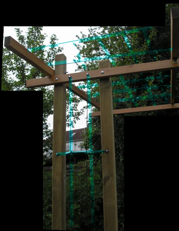 Bzgl Rankgerüst:Ich hab letztens folgendes für meine Kens Red gebaut:Einfach eine Art Pergola gezimmert und mit diesem dickengrünen Draht bespannt. Hab mal ein Bild angehängt (hab die Drähte ein bisschen farblich hervorgehoben)Bye, Simon