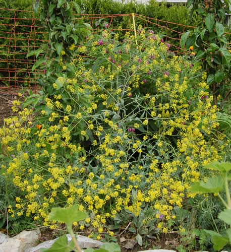 .Weiter geht es mit der Färberwaid. Schöner Busch. Der blieb noch übrig von etwa 100 Pflanzen. Wir säten eine Blumensamenmischung aus, was wuchs, war die Färberweid. In der Höhe von 120 cm. Das "Drama" spitzte sich zu, als alle blühten. Soviel Platz für dutzende von der gleichen Pflanze und wenn dann noch alle ihre Samen auswerfen würden. Die halb armdicken Strüncke auszureissen, war wie das Roden eines Stück Urwaldes