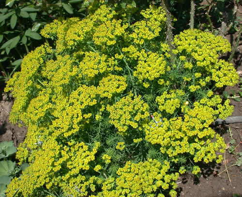 Die Zypressen-Wolfsmilch blühte schon im April. Ein zartes Pflänzchen mit einer grossen Leuchtkraft.Euphorbia cyparissias