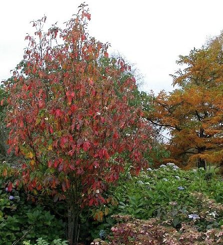 Also möchte ich auch mal etwas dazugeben. Mit der Winterhärte ist es natürlich nicht so dolle . Bei mir im Foliengewächshaus sind Containerpflanzen im Winter 2003/2004 zu 30% ausgefallen. Ca. 6-8 Jahre alte Exemplare sind dann einmal ausgepflanzt an einem nicht zu zugigen Standort jedoch schon gut hart. Weinbauklima sowieso. Wichtig ist der Standort . Warme feuchte Tage im Herbst fördern nicht gerade die Ausreife. Aber die sehr späte Blüte und das Herbstlaub entschädigen dann für die Mühe diese Pflanze in extremen Wintern ein wenig mehr Schutz zu geben. Grüße, Franklinia