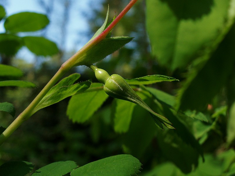 eine stachellose aufrecht wachsende wildrose aus den alpen (welche mag es sein?) ist im niedersächsischen exil schon ziemlich weit!