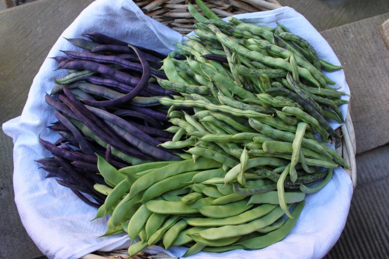 Hier ist es ein gutes Jahr für Bohnen. Mit den vier Kilo Stangenbohnen von heute früh bin ich jetzt bei knapp 35 Kilo in diesem Jahr (von einem Beet Buschbohnen mit ungefähr acht Metern Länge und einem Gerüst für Stangenbohnen - vielleicht drei Meter lang).