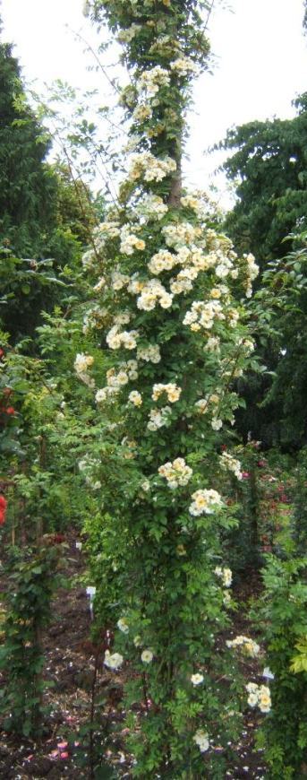Ich habs noch viel dümmer gemacht! Vor 5 Jahren im Ueberschwang der Rosenbegeisterung.Lykkefund an den alten Apfelbaum. Dann vier m weiter Bobby James und Marie Lisa nach 3 Jahren. Die wollte ich eigentlich auf einen Nachbarbaum leiten, der sehr weit in unseren Garten hinüber hing, nachdem ich 5 Jahre ums Zurückschneiden gebettelt hatte und nie was geschah. Genau da wurde der Baum bis über die Grenze zurück geschnitten. Jetzt ziehen BJ und ML ebenfalls Richtung alter Baum