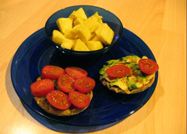 Diese Toastbrötli sind einfach sehr praktisch als Vorrat, wenn man sehr selten Brot isst.Heute gab's bei mir mal süss.Ananas und KakiYoghurt mit Honig und Reisflocken