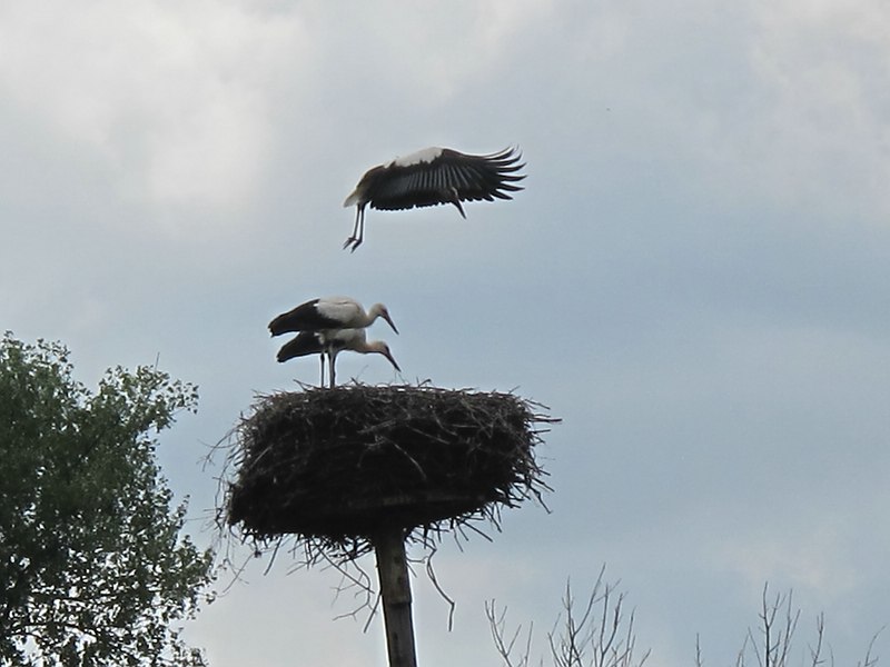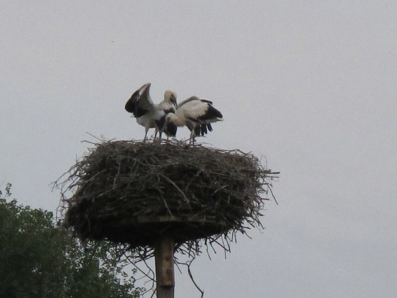 Hoffentlich schubsen sie sich beim Üben nicht gegenseitig runter. (Obwohl sie dann wohl trotzdem weitergefüttert würden.)Im Wiesbaden-Mainzer Raum hab ich auch schon Storchennester im Vorbeifahren bewundert. Und gestaunt.