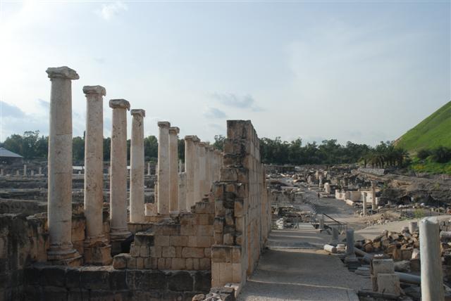 Nun kommen am Fusse des Tells die Scythopolis Ausgrabungen. Eine Säulenstrasse......