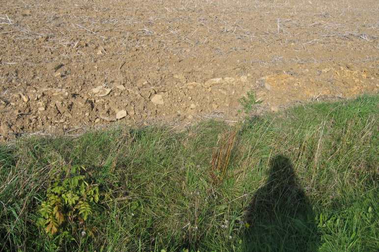 Und noch ein Bild. Zeigt einen Graben, dessen bauliche Substanz mittlerweile mit beackert wird.