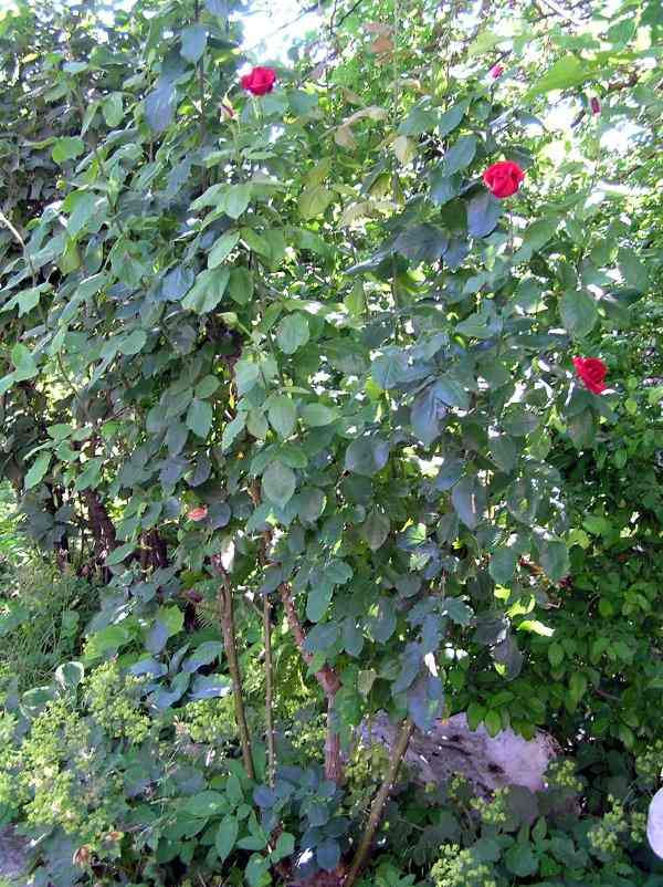 In manchen Gärtnereien habe ich schon von Lebenszeit-Einschätzungen von nur acht bis zehn Jahren (bei neueren, veredelten flanzen) erfahren. Das liegt aber m.E. nicht daran, daß R. laxa abstirbt sondern an einer Unverträglichkeit, die etwa zu diesem Zeitpunkt eintritt.Auf eigener Wurzel sind Rosen potentiell unsterblich.Wenn man tief genug pflanzt (oder zu hoch stehende Veredelungen angehäufelt hält) , haben sie die oft schon nach ca. zwei Jahren.Dieses (Kordes-) Schneewittchen sieht m.E. noch sehr fit aus und mit dem empfohlenen, schrittweisen Verjüngungsschnitt hast du daran sicher noch lange Freude.Das Lambert-Schneewittchen hab ich in arben schon als an die 2m hohen und breiten trauch gesehen. Hier war es (bis zum letzten Winter) auch schon über 1,5 m. Auf guten Böden kann das Multiflora-Wuchspotential teilweise durchschlagen.