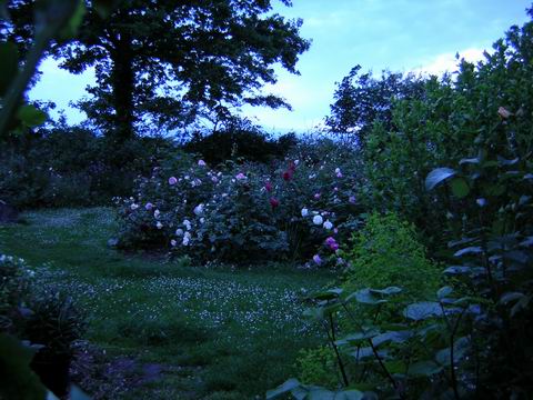 Im obigen Bild ist das große Beet mit Austinrosen gradeaus im Hintergrundhier ein Blick hinein
