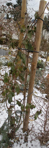 SchneewittchenHier sieht man recht viel frisches Holz, im Laufe des letzten Jahres aufgebaut. Das binde ich dann einfach während der Wachstumszeit zusammen, das es kreuz und quer in der Gegend herumhängt. Im Frühling schneide ich es dann aus dann im Frühling auszuschneiden und binde es neu um den Pfosten. Ich glaube mein Hirn ist etwas angefroren, schon wieder bleibt das Bild weg!