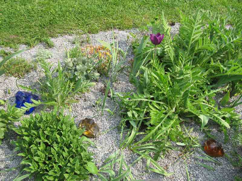 Ich kann hier nur zustimmen und auch nochmal betonen, dass es enorme Verbesserung bringt, Gesteins-Split in schweren Lehm einzubringen.Unser Boden ist toniger Lehm, klebrig, kalt. Vor zwei Jahren haben wir angefangen, regelmäßig im Frühjahr und Herbst eine deckende Schicht Lavagrus auf der Oberfläche auszubringen. Im angelegten Steingarten richtig dick, mit größeren Geröllbröckchen (ca. 40 bis 60 mm). Die Rosularien, Semperviven etc. haben den Winter hervorragend überstanden, nichts abgefault etc.Im Gemüsegarten wandelt mein Mann nach und nach Grünlandbrache in Beete um. Dieses Jahr ein eindringliches Erlebnis: Er arbeitete an einem neuen Beet, eisekalter Lehm, klebrig. Zwischendurch entdeckte er in einem angrenzenden Beet, welches schon zwei Jahre mit Lavasplit versorgt worden war, ein Unkraut. Beim Jäten fiel ihm der eklatante Temperaturunterschied des Bodens auf - locker und warm mit Grus, eiskalt und klebrig ohne. Das sind wirklich messbare Grade in der Bodentemperatur!!Und unter einer 1 bis 2 cm dicken Schicht aus Lavagrus blieb der Lehmboden auch in den letzten heißen Tagen feucht und krümelig - wo er, nackt, schon längst wieder zu Beton verbacken war.Idealerweise sollte der Lehmboden ca. 20-30cm aufgelockert und mit Sand (oder Kies/Schotter 0-30mm) durchlässiger gemacht werden, um so weniger besteht die Gefahr durch Ausfälle bei Winternässe!Um so rauher und nasser der Winter, um so durchlässiger sollte das Substrat sein. Die Pflanzen wurzeln mit der Zeit tief in den Lehmboden hinein. Das ist auch gut so. Wichtig ist aber, das vor allem der obere Wurzelbereich dräniert wird.