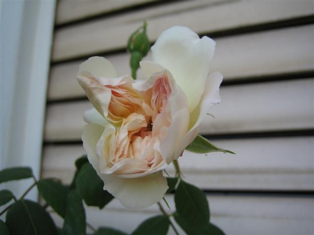 Ich muss es euch direkt erzählen: Ich habe eben meine erste im Freiland blühende Rose 2011 gesehen!Hier in Bonn in unserem Institutspark. Ich habe gedacht, ich sehe nicht recht: da blüht in ca. 3 m Höhe eine Englische Rose aus der Leander-Gruppe, ich schätze, es ist William Morris, mit zwei üppigen Blüten. Die Rosen sind dieses Jahr völlig ungeschnitten, weil der Gärtner krank ist. Die Rose wird an der Nordseite eines niedrigen Gebäudes hochgezogen, steht dort aber im Windschatten eines weiteren im Norden stehenden Gebäudes. Hell und luftig, aber eben Bonn - und geschützt.Eine blühende englische Rose im April ............. ich fass' es immer noch nicht.