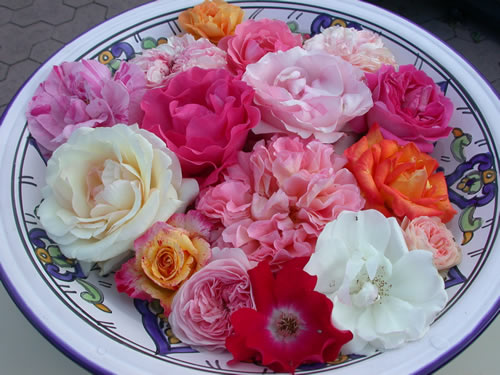 Eine Couscousschale von einer Freundin, umfunktioniert zur Rosenschale.Ist doch toll, was man so alles noch brauchen kann. Das hätte alles auch noch in Deiner herrlichen Garten-Küche platz, Lilo, nicht wahr?