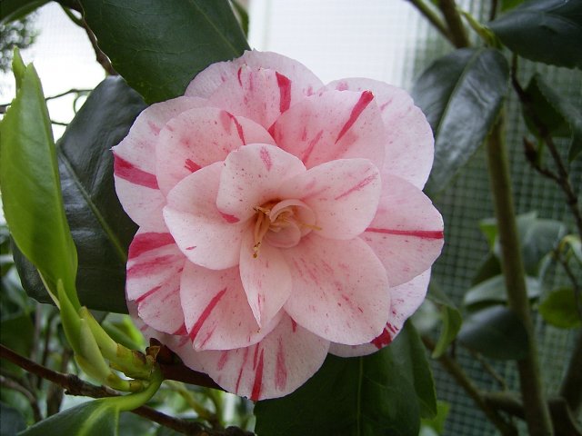 @Nina,wie hast du deine Topfkamelie auf der Terrasse stehen? Hast du sie speziell eingepackt?@Petra,jetzt wird es aber wirklich schwierig. Ich habe mir in mehreren Büchern und auf einigen Internet-Seiten Fotos von der Blüte von ‚Lavinia Maggi’ angesehen. Jede Blüte war anders. Was mich an deiner Blüte irritiert, sind die Staubgefäße. Normalerweise ist die Blüte dieser Sorte vollständig gefüllt. Ich überlege, ob es sich bei deiner Pflanze eventuell auch um ‚Bonomiana’ handeln kann. Die Kulturbedingungen spielen für die Blütenqualität eine sehr große Rolle. Ich zeige euch einmal ein Bild von meiner letztjährigen Blüte von ‚Lavinia Maggi’. Einmal habe ich das Foto nicht mit vorherigem Weißabgleich gemacht; daher war die Farbe in der Natur nicht ganz so intensiv. Aber wenn eine Pflanze im Freien und nicht im Gewächshaus blüht, sind die Blütenfarben immer leuchtender. Aber auch die Blütenform wird zum Teil von den Kulturbedingungen beeinflusst. Hat die Pflanze optimale Bedingungen, haben die Blüten häufig mehr Blütenblätter und die Füllung ist wesentlich gleichmäßiger und die Blüten sind größer. @Alegria,ich frage mich, warum deine Kamelie in Andalusien nicht draußen überwintern darf? Bei euch ist es doch gar nicht so kalt oder bist du im Gebirge? So wie ich Andalusien vor 20 Jahren erlebt habe, vermute ich einmal, dass es der Kamelie im Sommer eher zu warm sein wird. Meine Freundin und ich konnten jedenfalls vor lauter Hitze kaum in den Schlaf kommen.