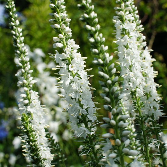 Veronica longifolia 'Schneeriesin' (1956) - 1955 vermerkt Karl Foerster im Katalog seiner Gärtnerei, daß Veronica longifolia 15 Jahre lang einer "Umerziehung" unterworfen wurde. Daraus entstanden zwei "riesenwüchsige" Sämlinge - 'Blauriesin' und 'Schneeriesin'.Veronica l. 'Schneeriesin' wird ca. 80 cm hoch.