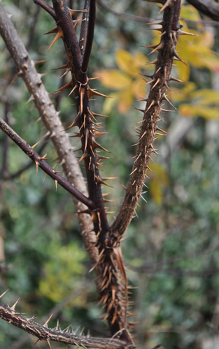 Ja, Fbb, die älteren Aeste sehen so aus. Werden aber wieder sehr lebendig im Frühling!Danke für das Bild. Ich finde das Holz hat eine Farbe wie tot. Aber das ist eben bei der so.Stachelmässig sieht die Basye's Purple Rose so aus: Rotes Phänomen's Vergleichsbild mit den Stacheln ist leider verschwommen.